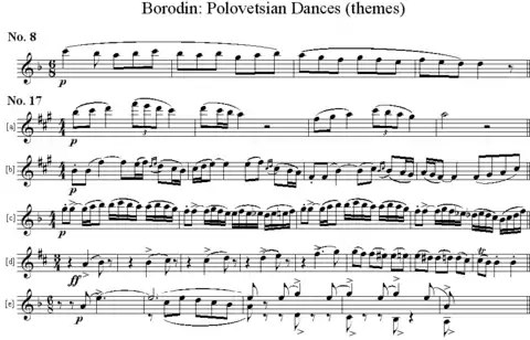 - Пляска половецких девушек — первый танец (No. 8, presto, 6/8, F major)
