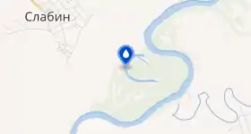 Расположено на правом берегу Десны — внутри заповедного урочища Торчин — юго-восточнее села Слабин. Озерная котловина имеет С-образную (вытянутую узкую) форму. Берега пологие.