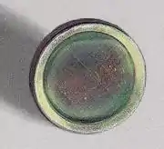 ![]() Тонкая плёнка металлического полония на диске из нержавеющей стали |