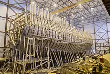 Летом 2013 года был заложен мидель-шпангоут, и началось изготовление килевых штук и остальных шпангоутов. Процесс осложнялся непростыми погодными условиями, стало ясно, что необходимо построить большой ангар для будущего корабля. В начале 2014 года ангар был построен, и работа ускорилась. Вскоре был заложен киль, установлены первые шпангоуты.[4]