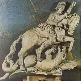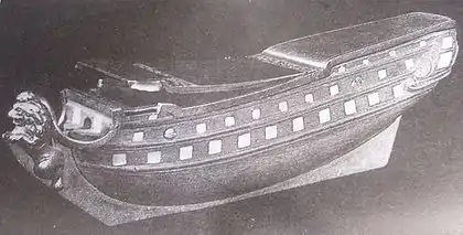 Гальюнная фигура, скорее всего, по сложившейся традиции, изображала льва, держащего в лапах щит с изображением двуглавого орла[20][28].
