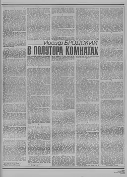 | Дата первой публикации | Brodsky, J. In a Room and a Half / J. Brodsky // The New York Review. Vol.33. 1986. R. 40—48 |