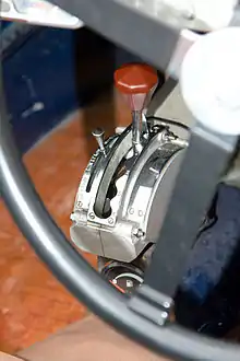 Переключение передач производилось обычным рычагом, расположенным на рулевой колонке. Поздние варианты переключателя имитировали автоматические трансмиссии и имели указатель-квадрант диапазона над рычагом, как у АКП — хотя сам процесс выбора передач не претерпел изменений. Педаль сцепления имелась, но использовалась только для выбора диапазона и была окрашена в красный цвет.