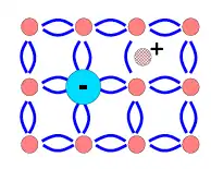 Во время разрыва связи между электроном и ядром появляется свободное место в электронной оболочке атома. Это обуславливает переход электрона с другого атома на атом со свободным местом. На атом, откуда перешёл электрон, входит другой электрон из другого атома и т. д. Этот процесс обуславливается ковалентными связями атомов. Таким образом, происходит перемещение положительного заряда без перемещения самого атома. Этот условный положительный заряд называют дыркой.