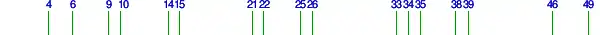 | 2 | 4 | 6 | 10 | 14 | 22 | 26 | 34 | 38 | 46 | 58 | 62 | 74 | 82 | 86 | 94 | 106 |
