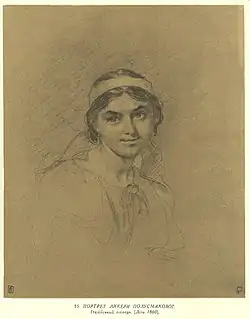 ![]() Т. Г. Шевченко. Портрет Ликеры Полусмаковой. лето 1860 | |