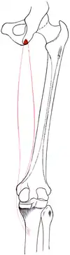 Сухожилие мышцы у места своего прикрепления вместе с сухожилием тонкой и портняжной мышц образует трееугольное, соединяющееся с fascia cruris сухожильное растяжение, так называемую поверхностную гусиную лапку (лат. pes anserinus superficialis)[3].