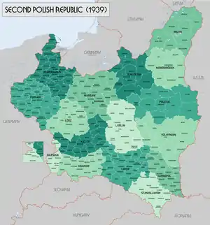 Административно-территориальное деление Польской Республики было трёхуровневым: страна делилась на воеводства (województwo) и столичный город, воеводства — на повяты (powiat) и городские повяты (powiat grodzki) (Лодзь, Ченстохова, Радом, Сосновец, Люблин, Белосток, Краков, Львов, Познань, Быдгощь, Гнезно, Иновроцлав, Торунь, Гдыня, Грудзёндз, Вильно, Катовице, Бельско, Хожув), повяты — на города (miasto) и гмины (gmina), городские поветы на районы (dzielnica).