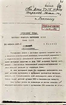 - Решение Политбюро от 15 сентября 1938 г. впервые опубликовано в «Московских новостях» (1992. 21 июня).