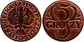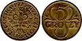 1, 2, 5, 10, 20 и 50 грошей 1, 2 и 5 злотых |