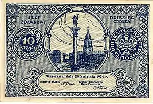 Первые годы независимости не были отмечены экономическими кризисами. Польский финансовый рынок не был отрегулирован, что являлось основной проблемой в те годы. На территории Польши к окончанию Первой мировой войны, в обороте находилось несколько различных денежных единиц. Кроме австро-венгерской кроны, немецкой марки и русского рубля, циркулировавших в соответствующих частях Польши, в обращении также находились эмитированные оккупационными властями во время Первой мировой войны острубль и остмарка. В 1917 году правительство Польши решило заменить их на единую денежную единицу — польскую марку[25].