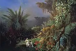 ![]() Памятник Бернардену де Сен-Пьеру в парижском Ботаническом саду; внизу изображены Поль, Виржини и их собака Фидель | |