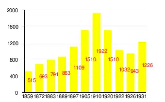 | Население | 515 | 693 | 791 | 863 | 1109 | 1510 | 1922 | 1520 | 1032 | 943 | 1226 |