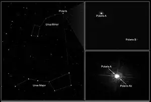 В 1929 году при изучении спектра Полярной было выявлено, что она является близкой двойной звездой, что было предсказано более ранними наблюдениями в 1924 году (J. H. Moore, E. A. Kholodovsky)[5]. Компаньон Полярной A находится в 18,5 а. е. Полярная P (α UMi P или α UMi a, или α UMi Ab) обладает массой, составляющей 1,26 массы Солнца, и располагается к сверхгиганту настолько близко, что сфотографировать его удалось только телескопу «Хаббл», и то лишь после перенастройки оборудования. Приблизительный период обращения Полярной P вокруг α UMi A составляет около 30 лет[6].