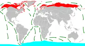 ![]() Гнездование Пути миграции Зимовка |