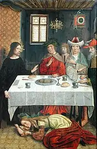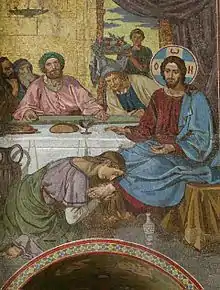 - Омовение ног ученикам — другой эпизод Страстей, где уже Иисус, в свою очередь, омывает ноги апостолам.