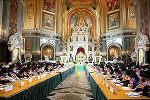 После трапезы, в Зале церковных соборов (цокольный этаж ХХС) состоялось открытие Архиерейского Собора, в котором приняли участие 198 из 202 архиереев Русской православной церкви[35].