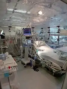 Отрицательное давление в помещении — это способ изолирования, который используется в больницах и медицинских центрах для предотвращения перекрестного загрязнения от комнаты к комнате. Это предполагает вентиляцию, которая создает «отрицательное давление» (давление ниже окружающей среды), чтобы воздух мог поступать в изоляционную комнату, но не выходить из неё, поскольку наружный воздух будет поступать из областей с более высоким давлением в область с более низким давлением и тем самым предотвратит попадание загрязненного воздуха в соседние помещения. Эта методика используется для изолирования больных воздушно-инфекционные заболевания, такие как: туберкулез, корь, ветряная оспа, тяжелый острый респираторный синдром (ОРВИ-CoV), респираторный синдром Ближнего Востока (MERS-CoV), грипп и коронавирусная болезнь COVID- 19.