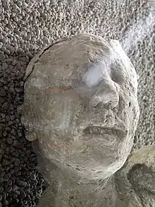 Из 20 000 жителей Помпей в зданиях и на улицах погибло около 2000 человек. Большинство жителей покинуло город до катастрофы, однако останки погибших находят и за пределами города. Поэтому точное число погибших оценить невозможно.