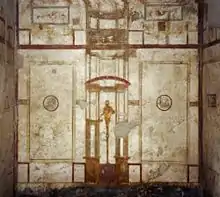 Построен после землетрясения 62 года н. э. (по другой версии, существовал и до этого, однако, посвящался культу императора). Занимает площадь 18 на 21 м. В нескольких нишах находились статуи ларов, в центре — алтарь.