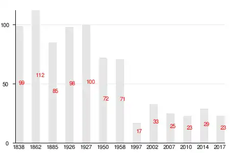 | 1838 | 1862 | 1885 | 1926 | 1950 | 1997 | 2007[20] |
