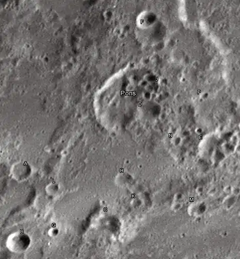 Кратер Понс (лат. Pons) — крупный древний ударный кратер в южном полушарии видимой стороны Луны. Название присвоено в честь французского астронома Жана-Луи Понса (1761—1831) и утверждено Международным астрономическим союзом в 1935 г. Образование кратера относится к нектарскому периоду[1].