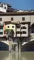 Над строениями идет Коридор Вазари, названный по имени архитектора, создавшего его специально для того, чтобы Козимо I мог спокойно проходить из палаццо Веккьо в палаццо Питти, так как в те времена на мосту располагались лавки мясников, и от моста исходило сильное зловоние. Вдоль коридора идет ряд небольших круглых окон, из которых, по легенде, правитель мог подслушивать, о чём говорят простые люди внизу на мосту. Начиная с XVI века лавки моста превратились в ювелирные магазинчики и мастерские. Поэтому его стали также называть «Золотым мостом». Во время флорентийского наводнения 1966 года ювелирные лавки сильно пострадали[5]. На мосту находится также бюст Бенвенуто Челлини, к которому традиционно приковывают «замки любви».