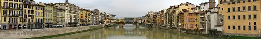 Понте-Веккьо — самый древний мост города Флоренции и единственный, сохранивший свой первоначальный облик. Первый мост на этом месте был построен ещё во времена древнеримской эпохи[1]. Тогда через него проходила Кассиева дорога; сваи были каменные, а надстройки — деревянные. Впервые этот мост упоминается в документах 996 года. В 1117 году он был разрушен наводнением и вскоре отстроен из камня, однако снова снесён потоками воды в 1333 году: после этого от него остались лишь две центральные сваи, как отметил Джованни Виллани в своей «Новой Хронике».