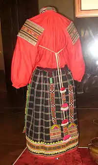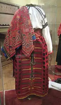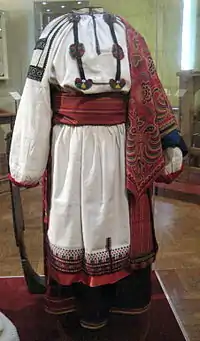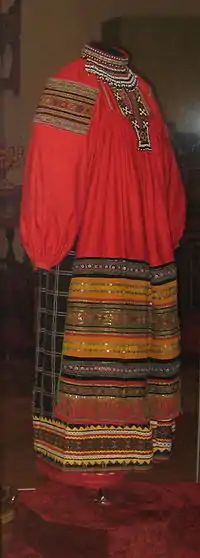- и разнополка, состоящая из трёх полотнищ разной длины, из которых короткое располагается справа, а треть первого и третьего полотнищ носили с подтыком — отворачивали и перекидывали через пояс.