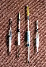 Поплавок можно снабдить различными антеннами, сделанными из трубок для коктейля. Диаметр антенны зависит от места крепления. В носик шприца можно вставить антенну из дерева диаметром 2 мм. На носик шприца туго надевается трубка диаметром 4 мм. На основание иглы можно надеть трубки диаметром от 3 мм до 6 мм. Антенны всех типов достаточно прочно держатся на своих местах без клея, и, вместе с тем, их легко заменять, особенно антенну на основании иглы. Таким образом, при изготовлении поплавка переменной грузоподъёмности можно обойтись без краски и даже клея. А само изготовление занимает не более получаса[1]. Если необходима большая грузоподъёмность, то сверху на антенну надевается наконечник из пенопласта.