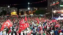 16 июля на улицы вышли тысячи сторонников действующей власти[35]. Некоторые из них пытались блокировать передвижение военной техники[29]. Военные открыли стрельбу по гражданским лицам, намеревавшимся перейти по мосту через Босфорский пролив в Стамбуле[36][37]. В частности, был смертельно ранен организатор избирательной кампании Реджепа Тайипа Эрдогана Эрол Ольчак и его 16-летний сын[38].