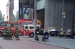 С территории, оцепленной от 43-й улицы до 49-й улицы по 7-му авеню и с 45-й улицы от 7-го авеню до 8-го авеню, были быстро эвакуированы все транспортные средства и люди, включая зрителей бродвейских представлений. Кроме того были эвакуированы люди из нескольких зданий вдоль улицы, где был припаркован Nissan Pathfinder, включая гостиницу New York Marriott Marquis.[24] Многие театры Бродвея были вынуждены отложить свои представления, и они были показаны ночью.[25]