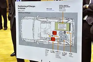 1 мая 2010 года офицером конной полиции Нью-Йорка была раскрыта попытка взрыва автомобиля на площади Таймс-сквер после того, как уличные торговцы сообщили ему о дыме, идущем из припаркованного автомобиля.[1][2] Бомба в машине воспламенилась, но не взорвалась и была обезврежена командой сапёров.[1][3][4]