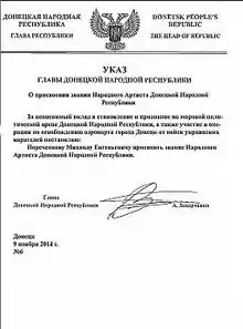 - Народный Артист Донецкой Народной Республики (2014)