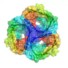 Порины (англ. Porins) — это бета-цилиндрические белки, которые пересекают клеточную мембрану и действуют как поры, через которые могут диффундировать молекулы[1]. В отличие от других мембранных транспортных белков, порины достаточно велики, для пассивной диффузии, то есть они действуют как каналы, которые специфичны для различных типов молекул. Порины присутствуют в наружной мембране грамотрицательных бактерий и некоторых грамположительных микобактерий, наружной мембране митохондрий и наружной мембране хлоропластов.