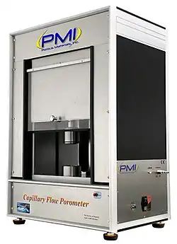 Измеряет широкий диапазон размеров пор, распределение пор по размерам, газовую проницаемость при различных температурах, нагрузке, различных химических средах, включая влажную атмосферу.