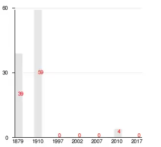 Число жителей по семейным спискам 1879 г.: 17 м. п., 22 ж. п.; по приходским сведениям 1879 г.: 23 м. п., 27 ж. п.[2]