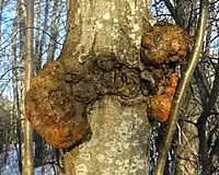 - Раковый нарост — образуется на дереве, поражённом некоторыми видами рака. Имеет неправильную форму.