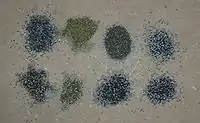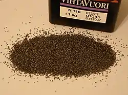 Зернистые пороха изготовляются в виде зёрен неправильной формы в пять стадий (не считая сушки и дозирования): помол компонентов в пудру, их смешение, прессование в диски, дробление на гранулы и полировка.