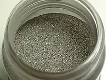 - Распыление расплавов (жидких металлов) сжатым воздухом или в среде инертных газов. Метод появился в 1960-х годах. Его достоинства — возможность эффективной очистки расплава от многих примесей, высокая производительность и экономичность процесса.
