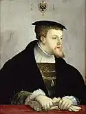 Христоф Амбергер. «Карл V в юности», до 1532. Практически камерный портрет, где монарх изображён почти как простой горожанин.