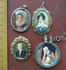 - Малоформатный и миниатюрный портреты, выполненные акварелью и тушью.
