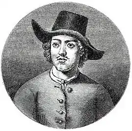 ![]() Гравюра 1699 года изображает юного царя Петра во время Великого посольства в Европу в непривычной европейской одежде. Этот портрет не возвеличивает правителя, а принадлежит скорее к жанру «туристических зарисовок» |