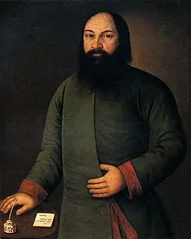 Купеческий портрет: опознается по костюму, обязательной бороде (у мужчин), а также застылости и примитивизму стиля, так как обычно их писали более «дешёвые» художники