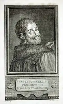 - Vasari, Giorgio (1511—1572) Cosimo I di Medici among court sculptors, architects and engineers. Fresco. (1563). Palazzo Vecchio, Florence. Detail: Portrait of Benvenuto Cellini.