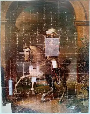 Дж. Доу.«Портрет Александра I верхом на коне». Холст, масло. Музеи Московского Кремля. Состояние накануне пожара в Центре им. Грабаря