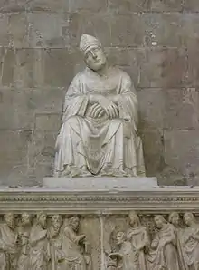 Первый круг итальянских памятников, где возникает портретное сходство, являются надгробия. В отношении ранних итальянских фигуративных гробниц (конец XIII века) высказывается предположение о использовании посмертных масок, что позволило мастерам добиться индивидуализации. Чертами некоторой портретности наделено изображение в гробнице папы Климента IV (1271—1274, Витербо, церковь Сан-Франческо) работы римлянина Пьетро ди Одеризио.