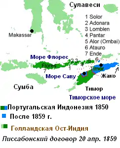 После подавления яростного сопротивления густонаселённых западных мусульманских султанатов, голландское наступление в португальский сектор Индонезии возобновилось с новой силой в середине XIX века. Лиссабонское соглашение 1859 года привело к утрате Португалии 2/3 своих владений в регионе за исключением Восточного Тимора.
