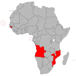 Все португалоязычные страны в Африке входят в ПАЛОП (Países Africanos де Língua Oficial Portuguesa), который состоит из Анголы, Кабо-Верде, Гвинеи-Бисау, Мозамбика и Сан-Томе и Принсипи. За исключением Анголы и Сан-Томе и Принсипи, где язык более наиболее распространен, на португальском в основном говорят только в городах.