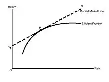 - — доходность портфеля, с соотношением риск-доходность таким же как и портфель минимального риска (графически это единственная точка пересечения с параболой прямой, проходящей через начало координат и вершину параболы)